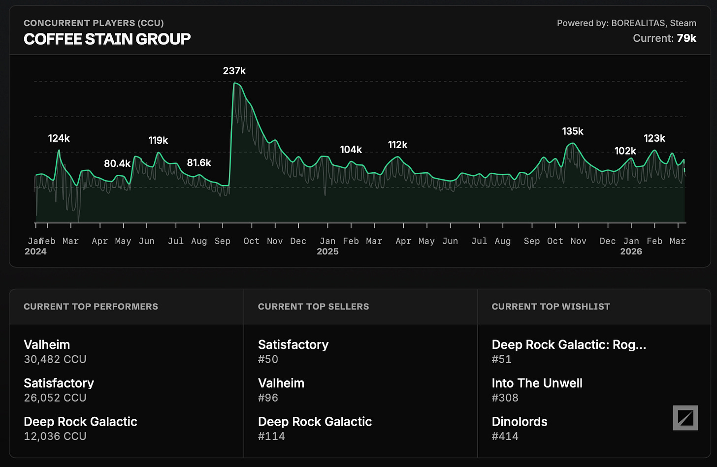 Alongside this, there’s additional optionality from Coffee Stain North, which has now cleared the development costs off the balance sheet after the recent Goat releases, while the studio hasn’t yet announced what the next project will be. That at least opens the door for speculation about a new major title or possibly a sequel.