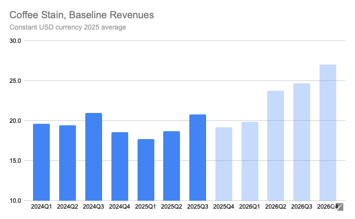 The most conservative re-rating case probably requires the company to first show actual bottom-line growth. When the market gets increased visibility within roughly two quarters confirming that the player base is more durable than today’s valuation implies, a re-rating towards around 15x cash flow should be a realistic target over time. Should individual game releases or updates also beat expectations, there’s room for additional short-term multiple expansion. It’s therefore not unreasonable to view Coffee Stain as a stock that already today offers a high single-digit and possibly double-digit cash flow yield with free optionality on future growth from new hits.